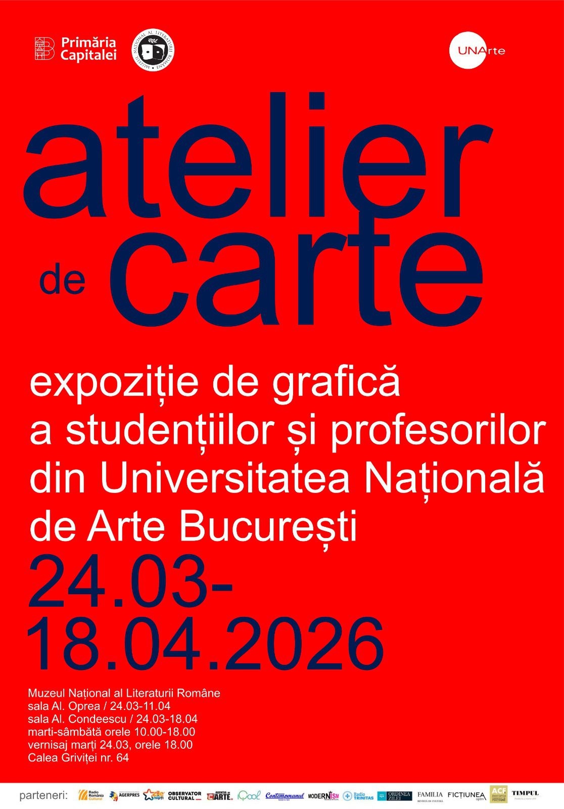 Muzeul Național al Literaturii Române organizează, la sediul său din Calea Griviței 64-66, expoziția de grafică a studenților și profesorilor din cadrul Universității Naționale de Arte București –  Atelier de carte.