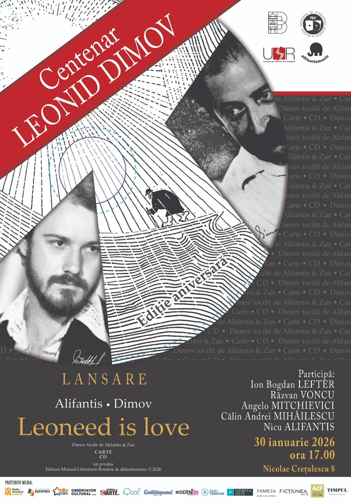 Cu acest prilej, Muzeul Național al Literaturii Române, Uniunea Scriitorilor din România și AlifantisMusic organizează, la 30 ianuarie a.c., în sediul M.N.L.R. din str. Nicolae Crețulescu, nr. 8, de la ora 17:00, evenimentul „Centenar Leonid Dimov”. În cadrul acestuia va fi lansată ediția aniversară a cărții-CD Leoneed Is Love – muzica: Nicu Alifantis, versuri: Leonid Dimov –, editate de Editura Muzeul Literaturii Române & alifantismusic, cu sprijinul BES Romania.