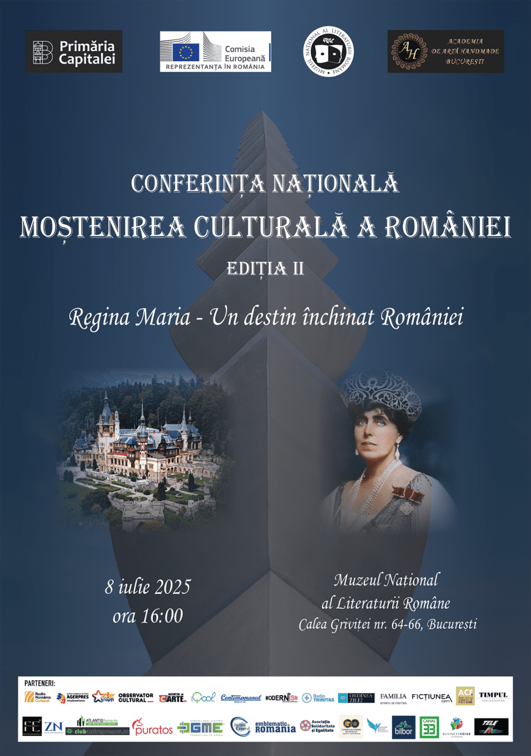 Academia de Artă Handmade București, în parteneriat cu Muzeul Național al Literaturii Române și Reprezentanța Comisiei Europene în România, organizează cea de-a II-a ediție a Conferinței Naționale „Moștenirea culturală a României”, care va avea loc marți, 8 iulie, la ora 16.00, la sediul Editurii Muzeului Național al Literaturii Române din București, Calea Griviței, nr. 64-66.