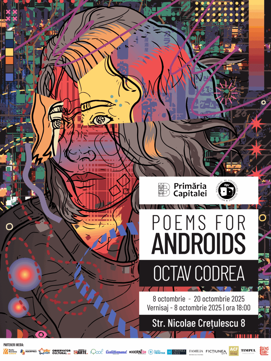 Poems for Androids este un proiect format dintr-o carte de poezie în limba engleză, scrisă și ilustrată digital de Octav Codrea. Ilustrațiile acesteia, înrămate și printate pe dimensiuni de 50 x 70 cm și 21 x 30 cm, fac obiectul unei expoziții care se va desfășura în perioada 8 – 20 octombrie 2025, în mansarda Muzeului Național al Literaturii Române, sediul din str. Nicolae Crețulescu 8.