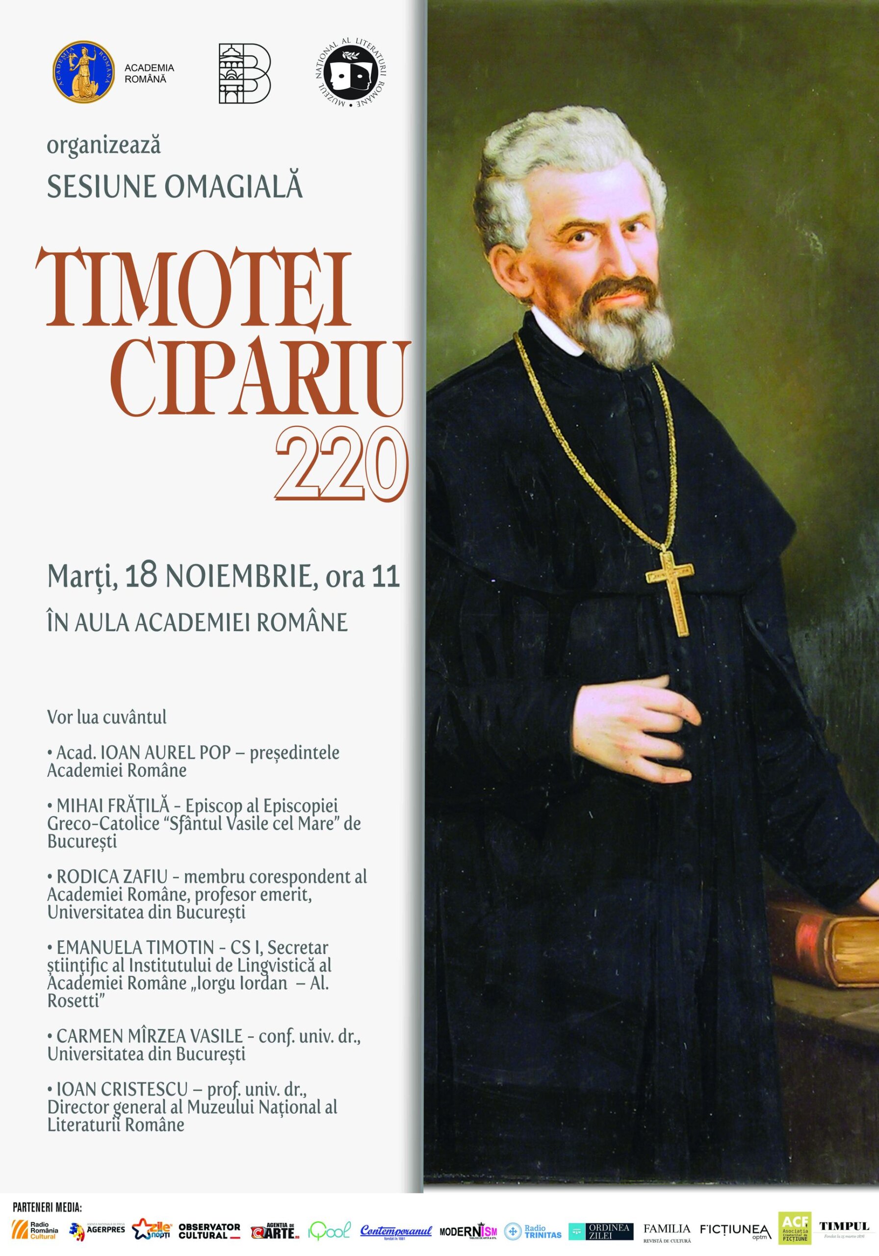 În data de 18 noiembrie 2025, Academia Română, secția de Literatură și Filologie, în colaborare cu Muzeul Național al Literaturii Române organizează Sesiunea omagială Timotei Cipariu 220. Evenimentul va avea loc în Aula Academiei Române (Calea Victoriei 125), ora.11.00.